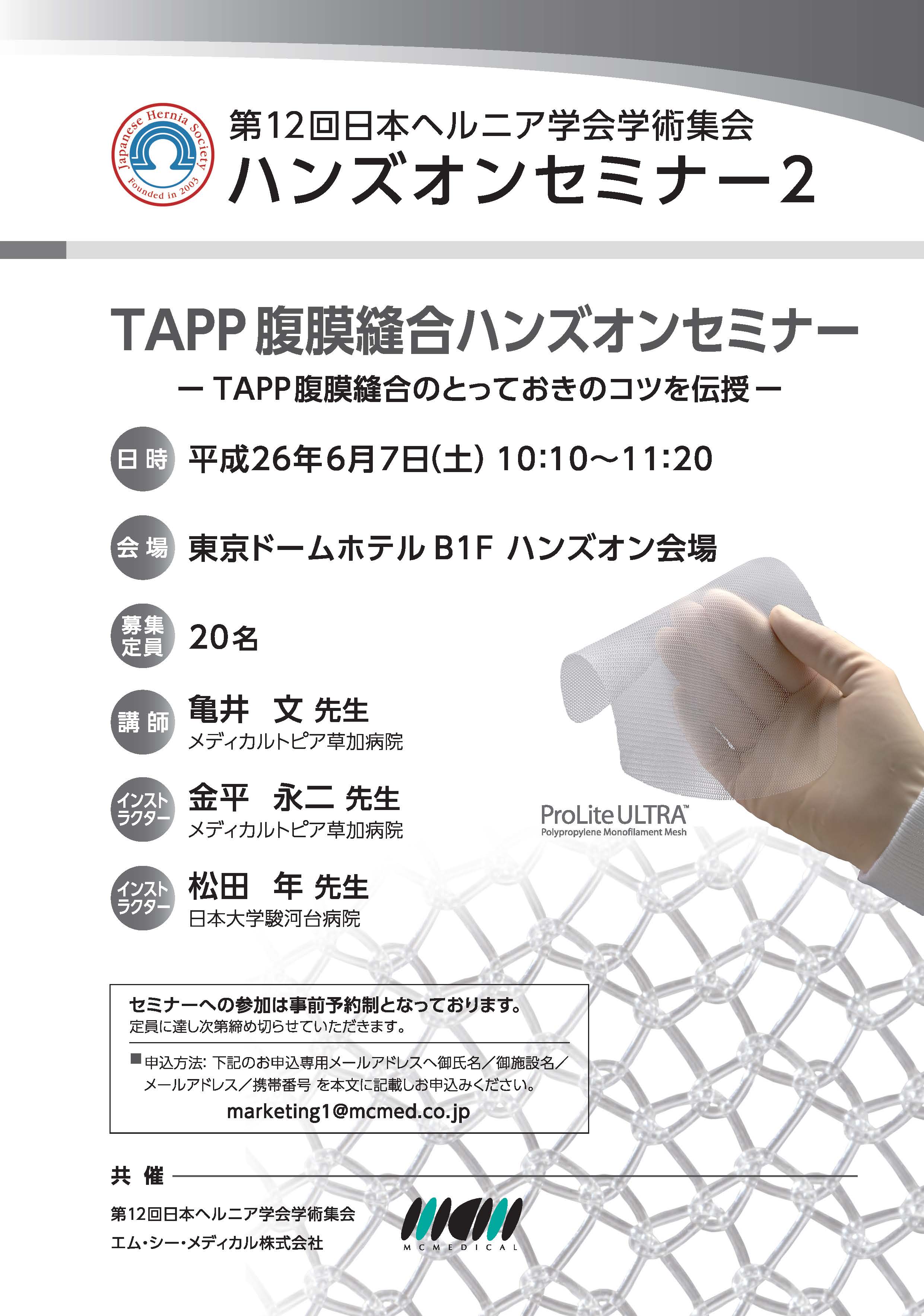 セミナー名:「TAPP 腹膜縫合ハンズオンセミナー」